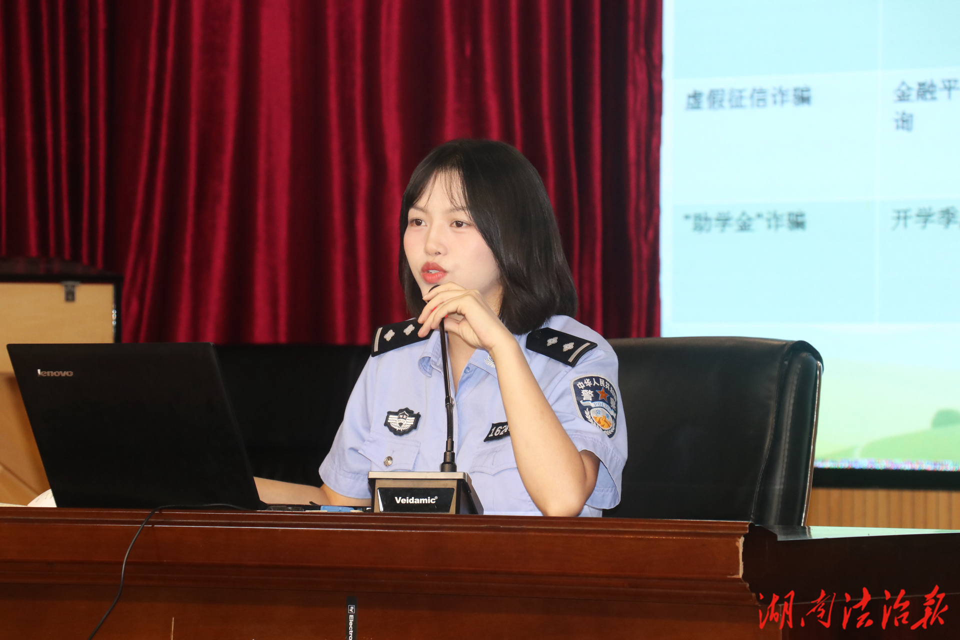 隨后,活動(dòng)進(jìn)入第二部分——“反詐知識(shí)課堂”??h公安局民警與銀行代表依次走上講臺(tái),為同學(xué)們帶來一堂別開生面的反詐專題課。民警結(jié)合近期發(fā)生在學(xué)生群體中的真實(shí)案例,深入淺出地講解了新型詐騙的演變趨勢與識(shí)別技巧,一段段觸目驚心的受害經(jīng)歷讓同學(xué)們深刻認(rèn)識(shí)到詐騙并非遠(yuǎn)在天邊,而是可能潛伏于日常的每一個(gè)來電、每一條信息之中。銀行代表則從金融安全角度出發(fā),補(bǔ)充了如何保護(hù)個(gè)人銀行卡信息、識(shí)別可疑交易等實(shí)用知識(shí)。