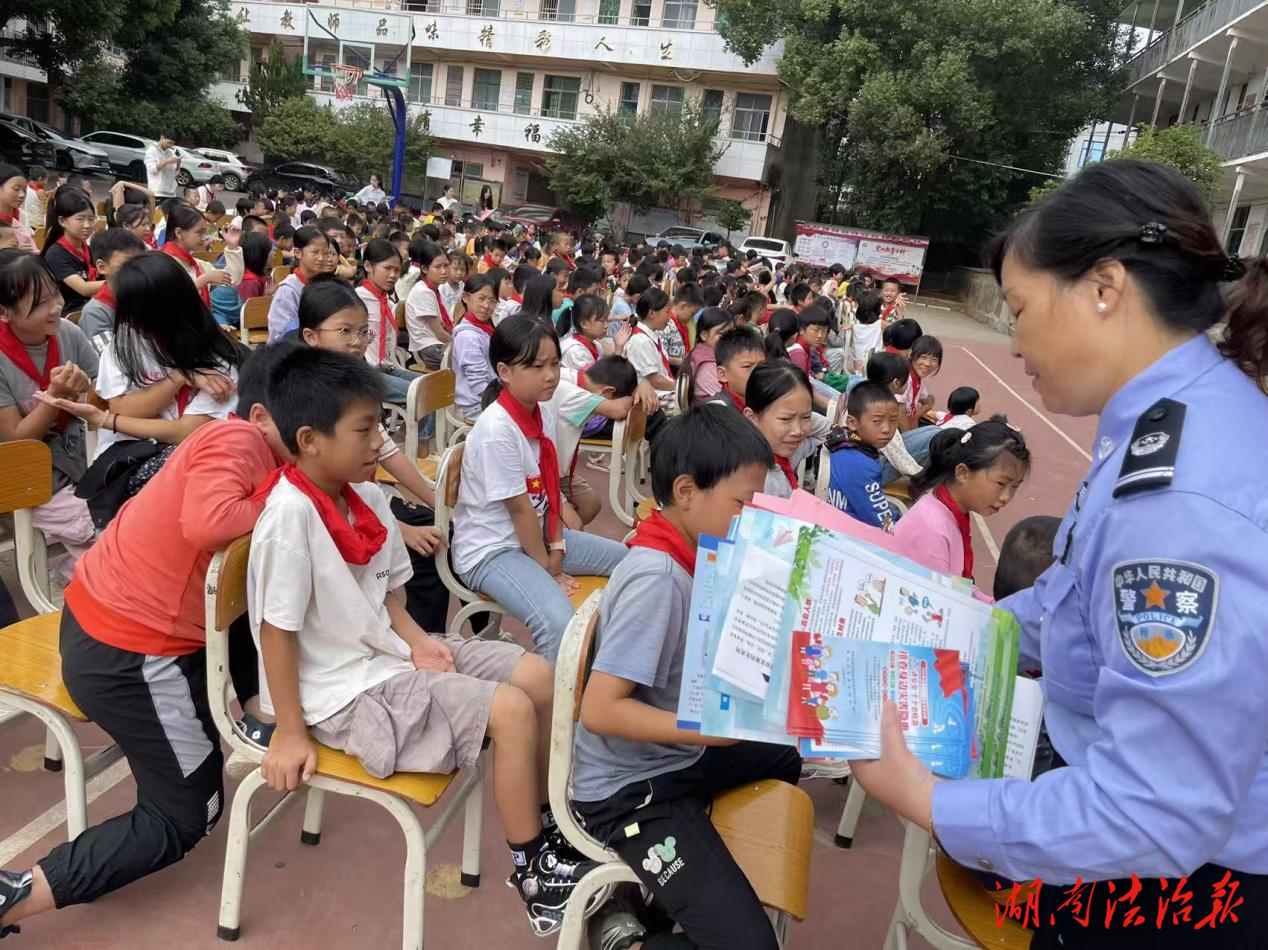 枧頭派出所民警則針對(duì)高發(fā)的電信網(wǎng)絡(luò)詐騙和青少年犯罪預(yù)防,結(jié)合近期典型案例,講解詐騙常見(jiàn)手段,提醒學(xué)生增強(qiáng)防范意識(shí),平時(shí)注意不泄露個(gè)人信息、不輕易轉(zhuǎn)賬,培養(yǎng)良好法治思維與文明習(xí)慣?;顒?dòng)現(xiàn)場(chǎng)還發(fā)放法治宣傳手冊(cè)、反電詐宣傳單、禁毒知識(shí)折頁(yè)等1000余份,方便學(xué)生課后與家長(zhǎng)共同學(xué)習(xí),形成“家校共育”良好氛圍。