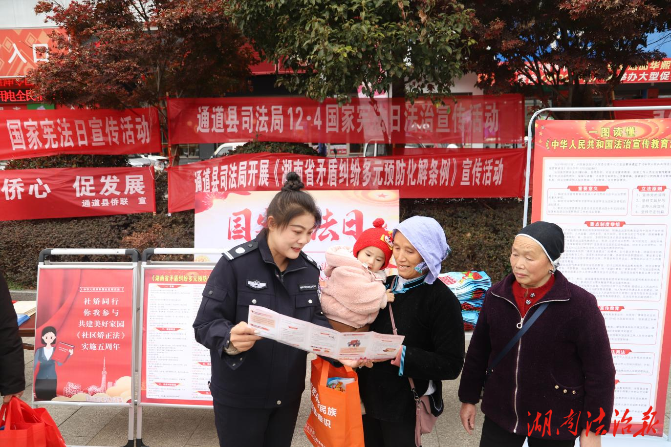 湖南法治報訊(通訊員 王盼)2025年12月4日,我國第十二個國家憲法日如期而至,通道侗族自治縣的鼓樓村寨、城區(qū)廣場、校園課堂同步響起尊憲崇法的“侗鄉(xiāng)強音”。緊扣“學(xué)習(xí)宣傳貫徹習(xí)近平法治思想,推動憲法深入人心”的年度主題,通道縣司法局延續(xù)多年普法傳統(tǒng),聯(lián)動30余家縣直單位、11個鄉(xiāng)鎮(zhèn)司法所及52名法治副校長,以“線上+線下”“城區(qū)+鄉(xiāng)村”“校園+市集”三維聯(lián)動模式,將千年侗鄉(xiāng)文化與現(xiàn)代法治深度融合,開展覆蓋全人群的沉浸式憲法宣傳活動,讓“高大上”的法律條文化作群眾看得見、聽得懂、用得上的生活指南。
