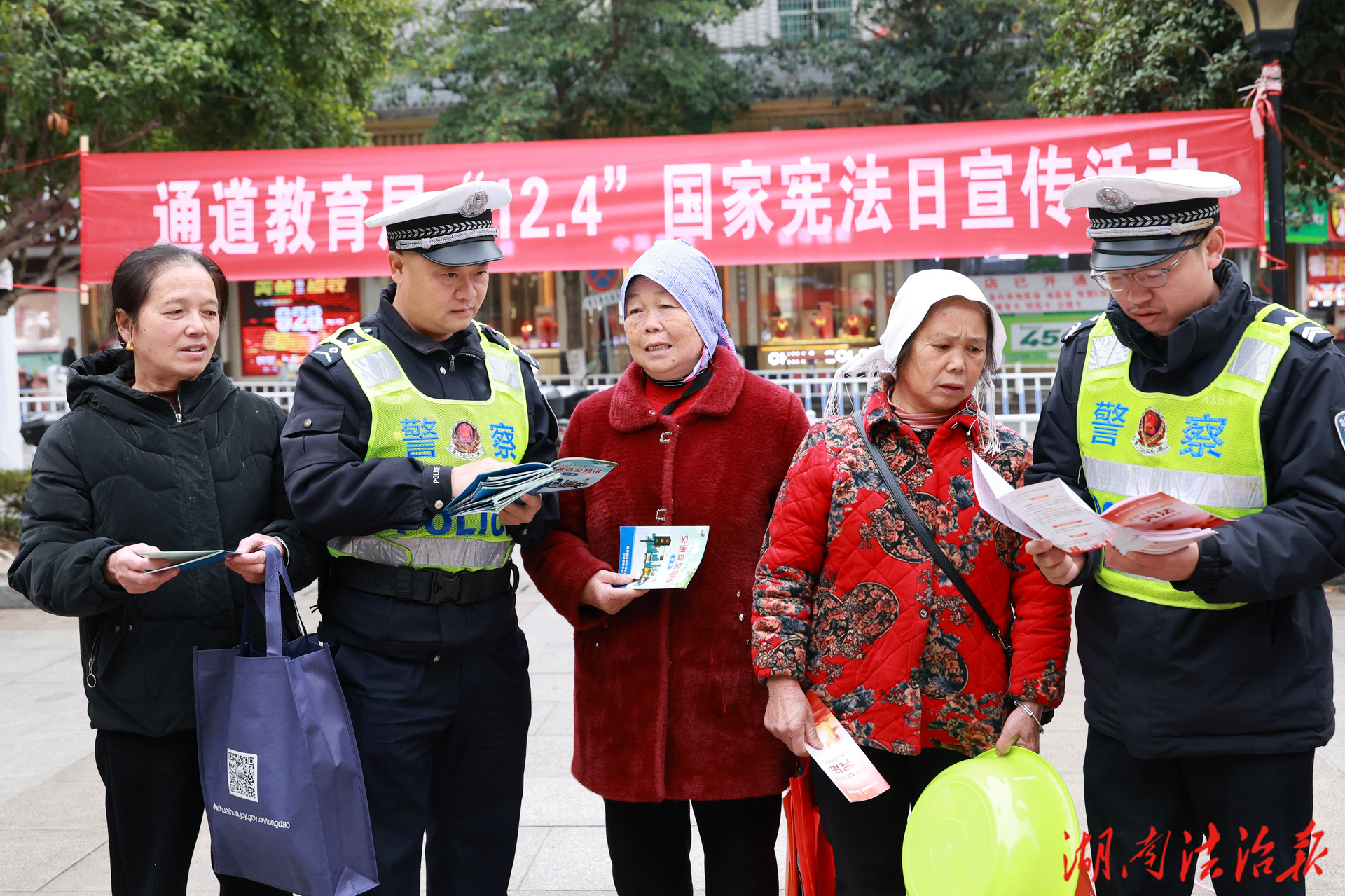 湖南法治報訊(通訊員 張羽格 石昕鑫)?2025年12月4日,是我國第十二個國家憲法日。為大力弘揚憲法精神,增強全民法治觀念,當日上午,通道縣公安局在逸品華熙廣場前舉行以“學習宣傳貫徹習近平法治思想,推動憲法深入人心”為主題的國家憲法日集中宣傳活動。