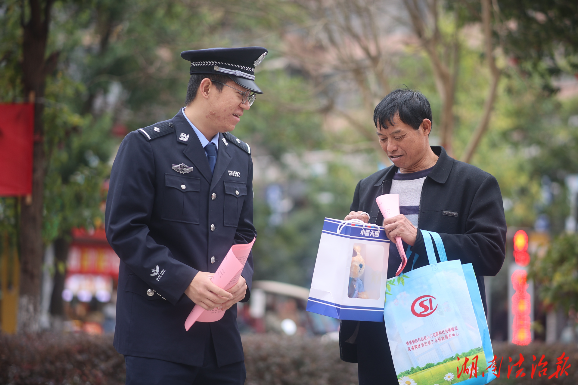 為提升普法效果,增強活動趣味性和參與度,此次宣傳采用了多種互動形式。民警們向群眾發(fā)放了憲法讀本、防范電信網絡詐騙折頁、森林防火指南、交通安全手冊等宣傳資料以及宣傳袋。最受群眾歡迎的莫過于“法律知識有獎問答”環(huán)節(jié),圍繞憲法、反詐、交通等知識點設置問題,現場群眾踴躍參與答題,答對者即可獲得可愛的“警察小熊”玩偶等紀念品。這種寓教于樂的方式,極大調動了群眾學法的積極性,讓法律知識在歡聲笑語中深入人心。
