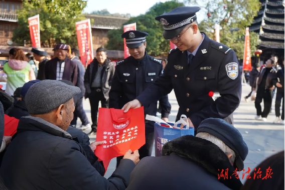 湖南法治報(bào)訊(通訊員 張羽格 石昕鑫)12月6日,正值坪坦鄉(xiāng)皇都侗文化村侗年節(jié)盛大開(kāi)幕,通道公安創(chuàng)新形式,將安全知識(shí)課堂“搬”進(jìn)節(jié)日現(xiàn)場(chǎng)。活動(dòng)前期,通過(guò)“通道公安”公眾號(hào)發(fā)布預(yù)熱推文,準(zhǔn)備了印有標(biāo)語(yǔ)的帆布袋、警察小熊玩偶和安全頭盔等物品作為互動(dòng)禮品,并設(shè)立宣傳點(diǎn),以發(fā)放資料、現(xiàn)場(chǎng)講解與互動(dòng)問(wèn)答等方式,吸引眾多群眾到現(xiàn)場(chǎng)參與集中宣傳活動(dòng),為他們送上了一份特別的侗年“平安禮”。